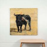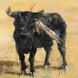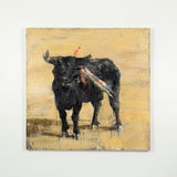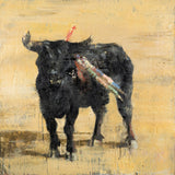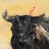 How do we explain Scherman's interest in the subject? Based on the title, one might question the artist's interpretation of the bull: does it symbolize seduction or dominance, and if there are impending consequences for its actions. Throughout Scherman's oeuvre he has depicted animals that posses complicated symbols including the hawk, the buck, and both domestic and hunting dogs.