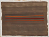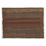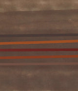 In this work, transparent bands or mink and chocolate brown serves as a backdrop to saturated bands of autumnal hues, including burnt sienna, umber, rust, and terracotta. The bands, suspended in the center of the composition, hover in a commanding alignment. The simplicity of this piece is further accentuated by its flat composition, a definitive characteristic throughout Perehudoff's oeuvre.