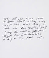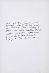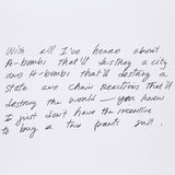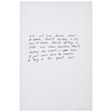 This early example from 1989 features a joke handwritten by the artist. The simple joke seems to concern his sexual frustrations and is relying on a punch line: "You know I just don't have the incentive to buy a two pants suit".