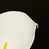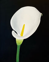 This refreshing painting conveys the gentle curvature of the trumpet-shaped flower, its smooth surface illuminated against the stark black background that recalls Pachter's distinct graphic style.