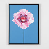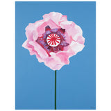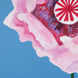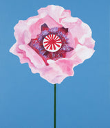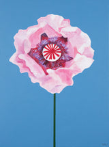 Featuring a pink poppy in full bloom, Pachter captures the center of the flower and depicts its playful, outward expression in this joyous piece. His characteristically bold, unmodulated colors flood the background of the canvas, maintaining his distinct graphic style in this otherwise supple composition.
