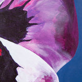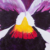 Featuring a forward-facing Pansy, Pachter captures the center of the flower and depicts its daring, outward expression in this confrontational piece.