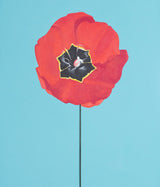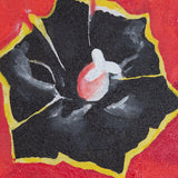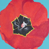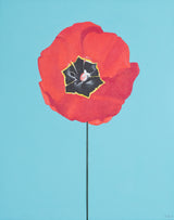 Featuring a tulip in full bloom, Pachter captures the center of the flower and depicts its alluring, outward expression that draws the viewer in. His characteristically bold colors punctuate the canvas, amplifying the tulip's sumptuous red petals against a bright turquoise background.