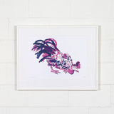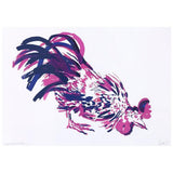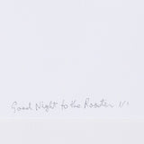 âGood Night to the Roosterâ utilizes the artistâs characteristic bold colors. Paired with expressive brushstrokes, the image is graphic and striking.