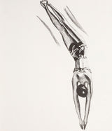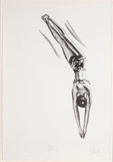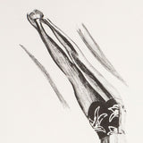 Reminiscent of Pachter's iconic Moose Plunge, this early print, "Plunge", is an elegant example of Pachter’s figuration. Minimal mark-making on either side of the figure demonstrates a graphic approach to depicting momentum. Pachter’s swimmer cuts through the space on the paper, creating an evocative reaction to the sensation and spectacle of jumping from a tall diving platform. While this work can appear to be an anomaly in his oeuvre, on reflection the artist has repeatedly depicted leisure by water, as Pachter has created varied images of docks, beaches, ocean waves and shoreline scenes.
