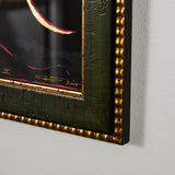 While it sounds cliche, this work is best appreciated in person. It has a lovely texture and variation of black hued surfaces. While we didn't choose this traditional and ornate frame...it is curiously handsome and effective with this artwork.