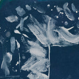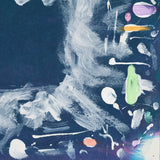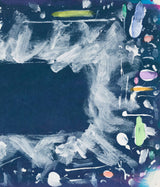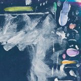 The aesthetic complexity he achieved with these combined techniques are perfectly demonstrated in this later untitled work (aka "Blue Splash"). Bursts and flecks of transparent white hover alongside washes of denim blue with touches of magenta.