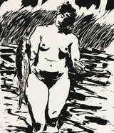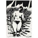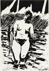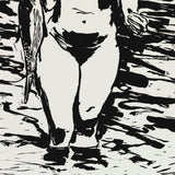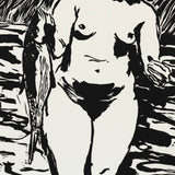 This work, "Trout" is a fine example of Fischl's aesthetic, and was created for the book "A Bestiary" by Bradford Morrow (b. 1951). Interestingly this is the only image in the book that shows a human figure with one of the animals. One of Fischl's favorite motifs are 'bodies by the shore'.