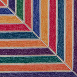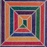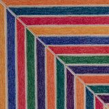 In this composition, Stella renders interlocking concentric bands in bold, contrasting hues that disrupt the symmetry of the geometric forms. The result is a striking interplay between color and shape that creates the illusion of shifting depths and dynamic movement. When you look at these forms, do you see a shape that is coiling into its center or are you looking downwards on a pyramid?