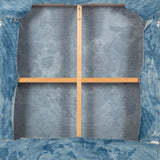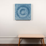 This work, a paradigm of their iconic Copyright series, features an enlarged symbol that encompasses the composition. The stretched denim is beached with a tie-dye effect that ripples around the symbol. These paintings appropriated the international symbol of legal ownership and turned it into an oversized abstract logo, and became the ideal version of abstraction in the post-modern era.