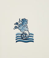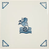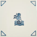 The boxed work contains General Idea's version of the Dutch Province of Zeeland’s shield, hand-painted on a ceramic tile, recalling classic Delft pottery. What once was a heroic lion rising up from crashing waves has been replaced with a curious poodle/mermaid hybrid. The poodle is a recurring symbol in General Idea’s practice that is both cute and subversive.