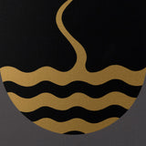 Centered on a handpainted background, "The Honeymoon is Over" features an enigmatic crest that displays a golden, moonlit waterscape.