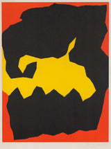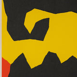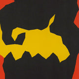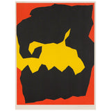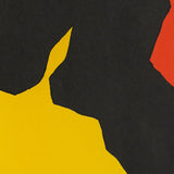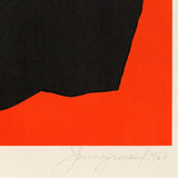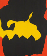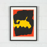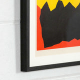 This work features a unique and bold trio of red, black, and yellow in cut-out like shapes. (Youngerman's work could often recall elements of Matisse's paper cut-outs.) Here, Youngerman forgoes his softer, organic shapes, instead focusing on the strong and jagged edges to compliment his fearless color palette.