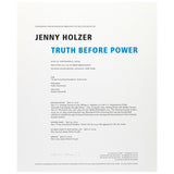 Jenny Holzer (b. 1950) is a multi-disciplinary American artist best known for her text-based public art projects. She was the first woman to represent the United States at the 1990 Venice Biennale. This work, comprised of four photographs, presents images from her projection âTruth Before Power,â organized by the Kunsthaus Bregenz in Austria in 2004.