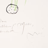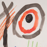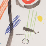 This print is a paradigm of his work and artistic expression. It is from the “Quelques Fleurs” portfolio. The prints in this portfolio were based on watercolors from his book “Je Travaille Comme un Jardiner” (“I Work Like a Gardener”) that were reproduced by Miró as an edition of prints. Each print in this portfolio was dedicated to one of his friends.