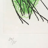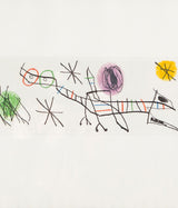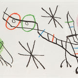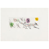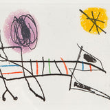 Miró’s signature line work and palette merge playful whimsy with Surrealism in this early etching. "Demand d'Empoli (III)" embodies Miró’s rebellion against traditional painting and the bourgeoise society that nourished it. His own visual language shines through and is instantly recognizable. Often referencing the cosmos and nature, this work is rich with cosmic symbolism and Miró’s signature simplified, biomorphic forms.