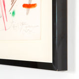 This print is a paradigm of his work and artistic expression. It is from the “Quelques Fleurs” portfolio. The prints in this portfolio were based on watercolors from his book “Je Travaille Comme un Jardiner” (“I Work Like a Gardener”) that were reproduced by Miró as an edition of prints. Each print in this portfolio was dedicated to one of his friends.