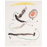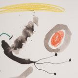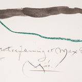 This print is a paradigm of his work and artistic expression. It is from the “Quelques Fleurs” portfolio. The prints in this portfolio were based on watercolors from his book “Je Travaille Comme un Jardiner” (“I Work Like a Gardener”) that were reproduced by Miró as an edition of prints. Each print in this portfolio was dedicated to one of his friends.