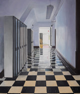 This painting depicts a corridor in Toronto’s 1 Spadina Crescent building, home to the University of Toronto’s Daniels Faculty of Architecture. This is where Tod taught Visual Studies & Painting from 2001–2018. In addition to depicting the halls she walked daily, Tod painted scenes from the building in homage to its layered histories—from laboratories where the whooping cough vaccine (developed by a woman), polio vaccines, and penicillin were produced. This specific corridor is a "before" image of building prior to being gutted and remodelled in 2012.