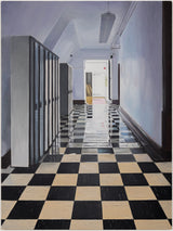 Rendered with alluring texture, masterful perspective, and soft light, "1 Spadina Corridor" is a captivating painting. While the tiles in the foreground are familiar, the details start to blur and fade deeper into the image. This painting is a succinct example of Tod’s appreciation of deep space and her ability to transform ordinary interiors into charged, almost theatrical settings.