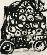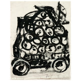 This work can easily be interpreted as vague figuration that approaches abstraction, not dissimilar to Philip Guston. On closer inspection, or recognition of the work's full title "Wagonload of People", it is hard to avoid the allusions to something more menacing like the Holocaust or genocide. This dichotomy or inherent ambiguousness is what makes Scott such a curious and successful artist.