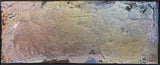 One of the other aesthetic characteristics of this era was the use of acrylics that had a distinct shimmer or the appearance of glitter suspended in the paint. Here this work at first glance seems a saturated but pasty grey/blue...but on closer inspection, the surface is highlighted with a wide variety of colors gently applied to the moodier surface including; tangerine, merlot, sky blue, and grape.