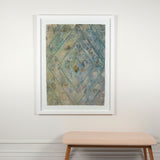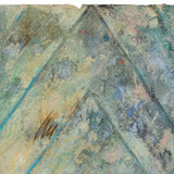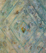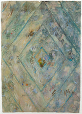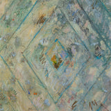 Pistachio, jade, mustard, rich umber, mauve, and teal shift into and out of each other, yet avoiding the clear-cut stacked triangular outline of his signature rhombi arrangement.