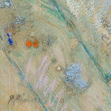 While in Spain Noland focused on the concentric diamond. This is another geometric motif that Noland embraced in order to explore color interaction and texture. This series, especially this work, show Noland at his most 'painterly' with the artist's hand on clear display. The surface blends a broad palette of Impressionist colors as if borrowed from an idyllic Monet water scene. On closer inspection we can discover squiggles, smudged lines and clusters of shading as if done by an impatient hand using pastels.
