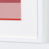 Noland is under-appreciated as a colorist. His brave color combinations remain remarkably vital and appealing half a century after their creation. In this untitled work, Noland pairs luxe shades of blush and plum which cover most of the vertical bandwidth, while complementary accents of tomato red and olive appear at the top and bottom of the work, respectively.