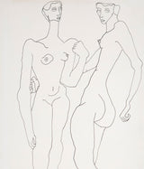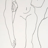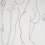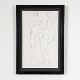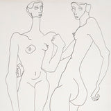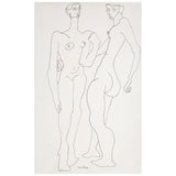 This unique and elegant line drawing reveals a distinct expression of modernism. The influence of both Matisse and Modigliani is evident. The figures' sensual lines are bold and stylized, almost sculptural.