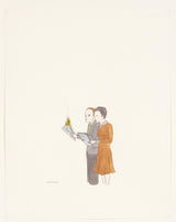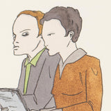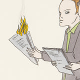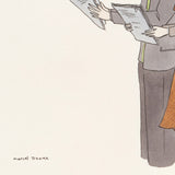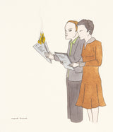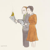This work is classic Dzama in its mix of banality and intrigue. Two characters (a couple?) read the news beside each other. The newspaper in the hands of the  male is on fire as he shoots an angry gaze towards the female next to him. Like the best of Dzama's work the viewer is drawn in and asked to assemble a context and a narrative.