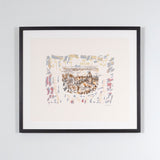 Riopelle's signature swatches of color gently frame the perimeter of the work. Its muted palette of mauve, dove grey, coral, buttermilk, black, and copper is a distinctive paradigm of Riopelle's printmaking from the last chapter of his remarkable life.