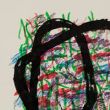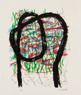 "Parler de Corde" was inspired by string games played by the Inuit. Schneider explained such games were the equivalent of “words uttered with the fingers” - while most of Riopelle's works are decidedly abstract, occasionally there are allusions of representation. The thick black squiggle that dominates the colourful background could easily be interpreted as depiction of such a cord.