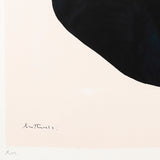 "Africa Suite #10" is one of most striking examples from this iconic series of prints. It features a bold yet very ambiguous black shape against a warm neutral color field. The simplicity of this composition recalls a graphic Rorschach test. An organic form swells across the page and begs the viewer to interpret its presence. Is this shape representing something menacing or friendly? Or is it simply an abstraction? How do you interpret this shape?Â