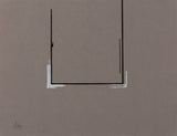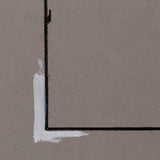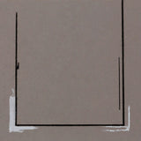 "Grey Open with White Paint" is a quintessential example of this series. A sweeping plane of warm mink or stone grey hosts a rectangle comprised of three fine black lines. Swathes of stark white embrace the corners of the form, accentuating its crisp angles. Like the best of this series, the top of the rectangle is left unlatched, as if representing a window, a swing, or opening into a world beyond.
