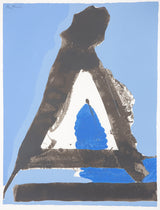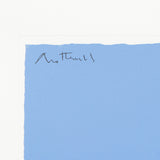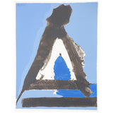 This print is a paradigm of Motherwell's oeuvre: aggressive black forms create a confidant abstract arrangement, softened by decorative and soothing shades of blue.