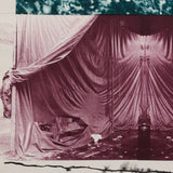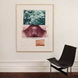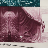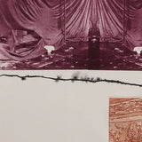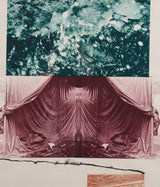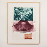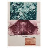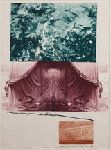 In “Aquafix” Rauschenberg takes a pared-back approach, layering three disparate images in a vertical composition. The artist thoughtfully juxtaposes organic textures with theatrical and ornate details, creating a dialogue between raw, natural elements and the possibilities of human creativity.