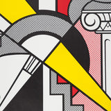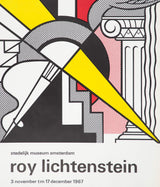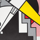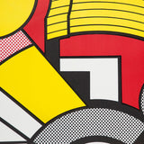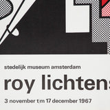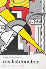 "Stedelijk Museum Amsterdam" is a historic memento that announces Lichtenstein’s first solo exhibition in Europe, in 1967. This bold poster perfectly demonstrates the artist’s signature aesthetic and includes some of his most recognizable motifs in this distinct and dynamic abstract composition.