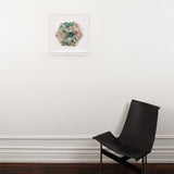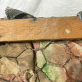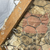 Mixed media assemblage (acrylic, acrylic gel, hardware cloth, handmade paper and fabric)
