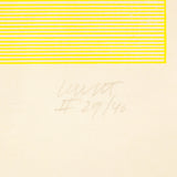 This particular work is a paradigm of LeWitt's work - fine lines, geometric icons and primary colors.
