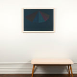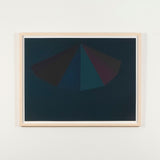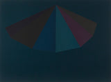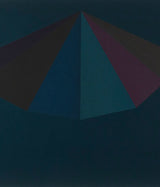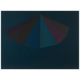 Set on a midnight teal background, this lustrous silkscreen features a rounded pyramid comprised of six triangles. The moody, atmospheric composition is a fascinating example of Lewitt's continued exploration into the possibilities and variations of shapes and their relationship to color.