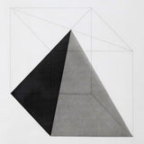 "Forms Derived from a Cube" is an exciting series that exemplifies LeWitt's nearly scientific approach to exploring shape. This work features a pyramid encased by grid-based drafting reminiscent of a blueprint.