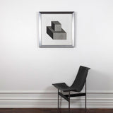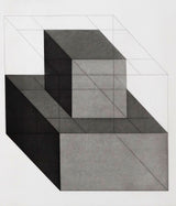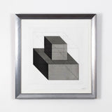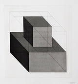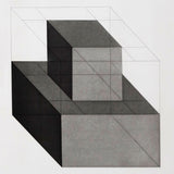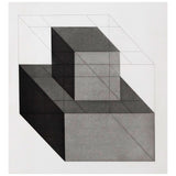 "Forms Derived from a Cube" is an exciting series that exemplifies LeWitt's nearly scientific approach to exploring shape. This work features two stacked cubic forms surrounded by grid-based drafting reminiscent of a blueprint.