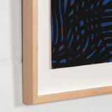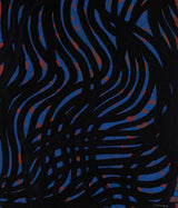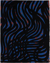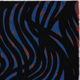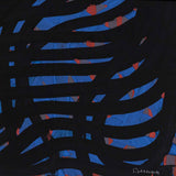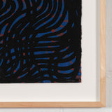 Swirl (2001) feature his emblematic thick black brushstrokes, that almost resemble a ribcage, creating an overlay of movement with a vibrant blue coating the underlayer, and bright red dots peeking through.