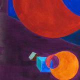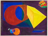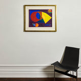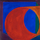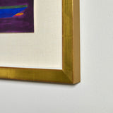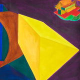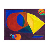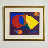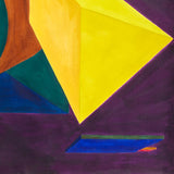 "Camerata XVI" is a striking work on paper from the last chapter of the artist's career. In the late 1980's Held embrace and mastered watercolor. In this work, a series of dynamic geometric shapes seem to float on a deep eggplant colored backdrop. The artist expertly manipulates the depth and perspective of each form through color, using vibrant shades of lemon yellow, marigold, ochre, cobalt, and terracotta to create a motion and lightness.