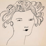 Andy Warhol (1928-1987) had many muses; both real and imagined. In the 1950's he was an in-demand and celebrated illustrator working for New York's toniest publications (like Harper's Bazaar) and elegant shops (such as Bonwit Teller) in addition to many smaller independent fashion companies. Warhol created drawings of clothes, accessories, and stylized beauties in a distinctively elegant but playful aesthetic.