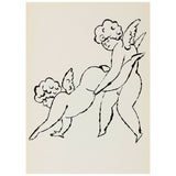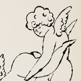 "In the Bottom of My Garden" is one of Warhol's earliest and best-known hand-made books. It is made up of an ethereal wonderland of fairies, cherubs, and abundant florals. The book was composed of 16 unbound lithographs with a small number of hand-colored prints. These stylized chubby angels are both elegant as they get into scenes of fey mischief.