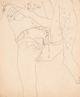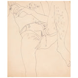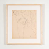 This complex drawing is a testament to Warhol's mastery of line and composition. Warhol is able to compress and capture the sitter's body onto the picture plane with remarkable simplicity and sophistication despite the unconventional pose and foreshortening. With the lightest touch, Warhol masterly portrays this figure of leisure and insouciance with the lovely details of his tight jean shorts, fingernails and light patches of body hair. Another reminder that Warhol was an exceptional draftsman.