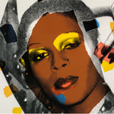 This is a particularly lovely work, with its confetti motif, it perfectly captures the glamour and pride of not only its subject but the disco era in general.