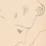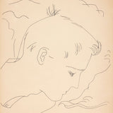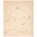 This drawing is a paradigm of Warhol's mastery of line and visionary framing. A man's bowing profile commands the composition, which is surrounded by quick and ambiguous gestural lines. With the lightest touch, Warhol portrays this male ideal with the details of his tranquil pose, the softness of his closed eye, and the serenity of his aura. Another reminder that Warhol was an exceptional draftsman.